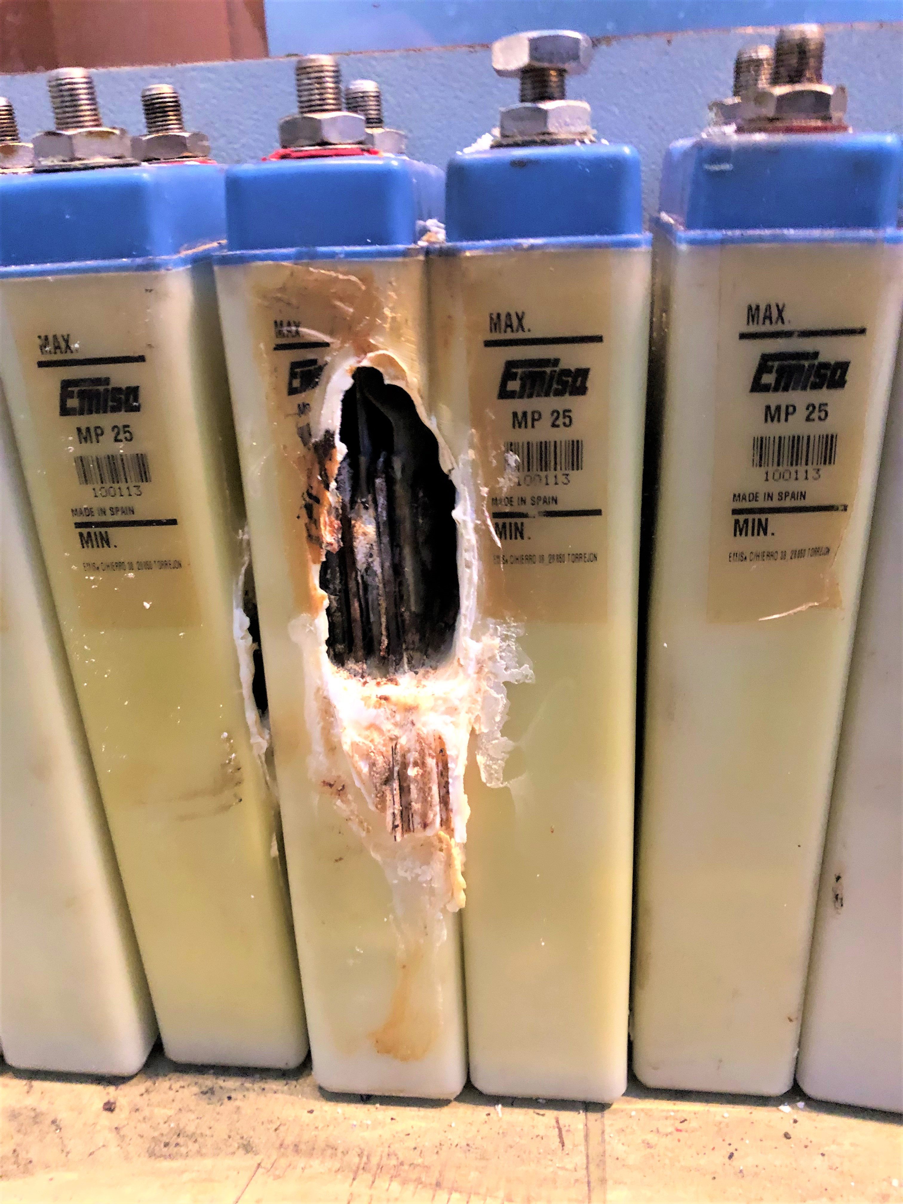 ¿Porqué es fundamental efectuar controles periódicos del nivel de electrolito?Para evitar desastres como el de este ejemplo. Incluso en equipos que tienen alarma de nivel de electrolito pero que no está monitorizada?